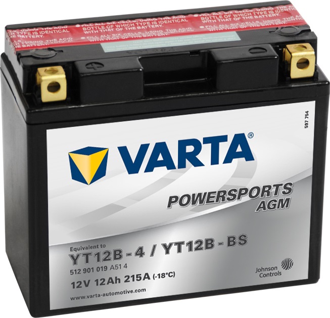 Μπαταρία μοτοσυκλετών Varta κλειστού τύπου AGM YT12B-BS - 12V 12Ah - 215CCA (EN) εκκίνησης , με στιβαρό περίβλημα που προσφέρει άριστη αντίσταση στις δονήσεις και με τεχνολογία AGM που δεν απαιτεί απολύτως καμία συντήρηση.